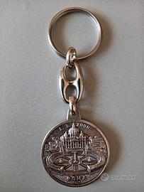Vendo questi 2 portachiavi religiosi in metallo: - uno con medaglia con ritratto in rilevo di Papa Giovanni Paolo II da un lato e Roma dall'altro lato - l'altro con medaglia ovale con Madonna con Bambino. Vendo in coppia a 10 euro in totale.