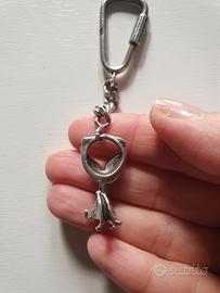 Portachiavi particolare vintage anni '70 punzonato in argento 800, a forma di gatto stilizzato, mai usato. Lunghezza 10 cm, peso 14,31 grammi. Oggetto particolare e bello.
