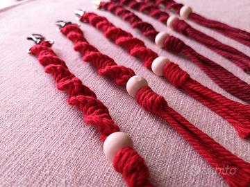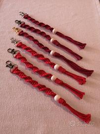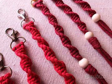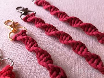 - Portachiavi a spirale realizzati a mano con filo di puro e morbido cotone con tecnica macramè, rosso chiaro e scuro