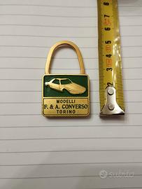 Vendo raro portachiavi Modelli F & A CONVERSO raffigurante il telaio dell'autovettura Fiat X 1/9 . Dim. altezza totale 5,5 cm e larghezza 3 cm. Nuovo. Spese a carico del destinatario.