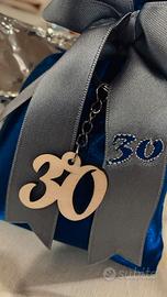 Kit di 30 pezzi portachiavi numero 30 realizzati in legno, completi di ciondolo in metallo ideali come gadget per compleanno 30 anni.