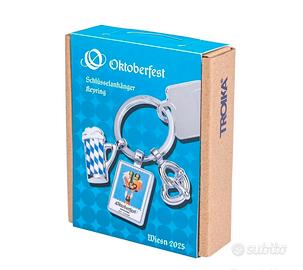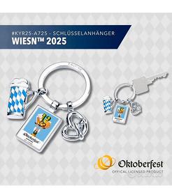 Portachiavi Oktoberfest™ 2025 con motivo annuale ufficiale Wiesn™ 2025 Oktoberfest con boccale di birra e pretzel, portachiavi con anello in metallo pressofuso, finitura lucida