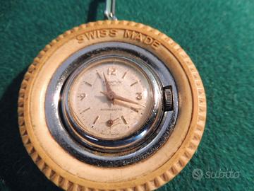 Grazioso portachiavi orologio con riproduzione pneumatico, marca Diantus, 15 rubini fabbricato in Svizzera, oggetto da collezione funzionante. Stato come da foto , vetro con piccoli segni del tempo.