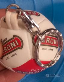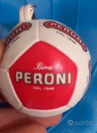 Portachiavi a forma di pallone da calcio, con logo Peroni.Portachiavi peroni pallone similpelle vintage italia anni 2000 usato come nuovo in perfette condizioni, Diametro: 6 cm - Materiale: similpelle. - Dettagli: Birra Peroni e Dal 1846. - Colore: bianco e rosso