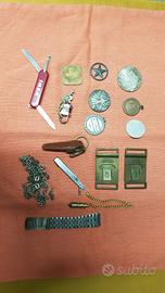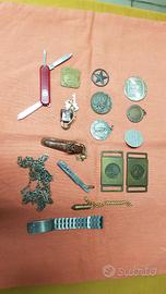 Portachiavi VINTAGE spille - medaglie - accendini - e altri oggetti - le condizioni li potete vedere nelle foto. Si cede anche separatamente.