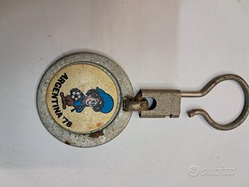 Portachiavi ciondolo vecchio del campionato mondiale di calcio Argentina 78 in metallo, ha diverse macchie di ruggine dovute al tempo trascorso, misura la medaglia cm.4, lunghezza totale cm.9, vendo a euro 35, ritiro e trasporto a carico del compratore oppure posso spedire solo ed esclusivamente con pacco postale in contrassegno costo aggiuntivo 10 euro