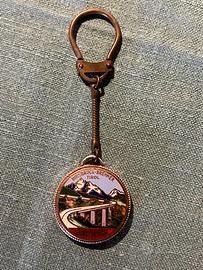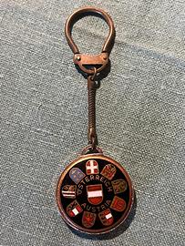 Il portachiavi è in ottime condizioni, in metallo e smalto su due lati: nel lato posteriore sono rappresentati i 9 stemmi degli stati federali austriaci + la bandiera nazionale al centro; sul lato anteriore vi è ragfigurato il viadotto Europabrücke vicino Innsbruck. Presumibilmente questo souvenir fu fatto in occasione dell’inaugurazione del ponte che avvenne nel 1963. Quest’oggetto è di grandissimo valore collezionistico, piuttosto raro da trovare.