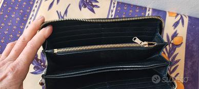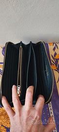 Elegante portafoglio Patrizia Pepe. - Materiale in pelle texturizzata. - Logo a forma di ape dorata. - Chiusura a zip perimetrale.