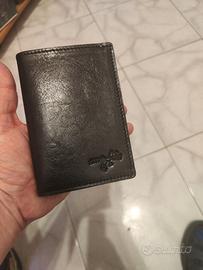 Portafoglio vera pelle con placca Porta tesserino e porta banconote N.B. il portafoglio non riporta più la scritta in quanto si è rovinata per un errore di stampa ed il portafoglio è stato sistemato ed è a posto si vende a prezzo basso scontato. Il portafoglio non ha alcun danno, manca solo la scritta. Il portafoglio viene venduto solitamente finché c'era a 65 euro VERA PELLE NON ECOPELLE E CARTONE