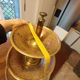 portafrutta a tre piatti ottone e rame diametro massimo cm 45 h circa cm 60 pesa quasi kg 4,5