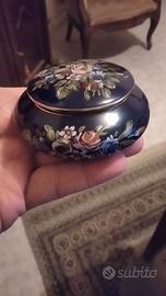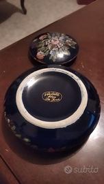 scatola portagingilli vintage Veritable bleu Limoges. Elegante e raffinata, è perfetta per conservare i vostri gioielli. antica scatola portagingilli Veritable bleu de four autentica in fine porcellana Limoges dipinta a mano. diametro: cm11.