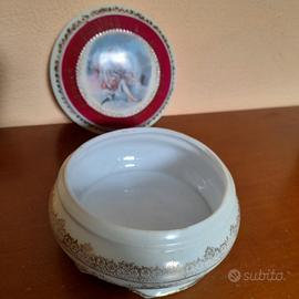 Portagioie / oggetti in ceramica con coperchio dipinto " ST. KILIAN O S " Oscar Schlegelmilch Germany, Ø cm. 11 ca. x h. cm. 5,5, vintage