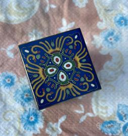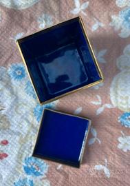 Portagioie ottone Giappone scatola cloisonne Blu Cobalto e Oro Vintage antico perfetto senza difetti