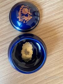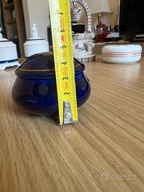 Bellissimo portagioie vintage, realizzato in porcellana di colore blu intenso.