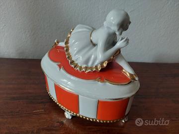 Scatola portaoggetti con ballerina in porcellana di limonges in stile Art Deco'.