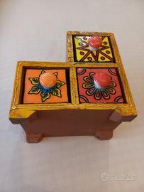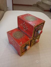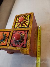 Cassettiera per gioielli o scatola per spezie in stile indiano.