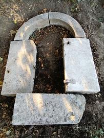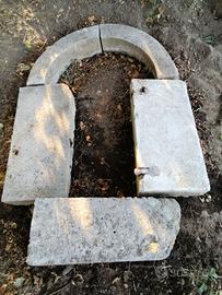 Portale antico in pietra bucciardata artigianalmente, largo mt 0,70 e alto mt 1,10. Le pietre laterali sono larghe mt 0,35. Originariamente contornava un pozzo presente all'interno di un fabbricato padronale. Si compone di due pietre che formano l'arco superiore, di due blocchi laterali che nelle foto sono posizionati orizzontali al terreno ma vanno montati verticalmente a dx e sx della pietra che forma la base.