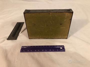 Materiale Pesante: Realizzato in un metallo massiccio (forse peltro o lega di metallo brunito), con fondo in legno.