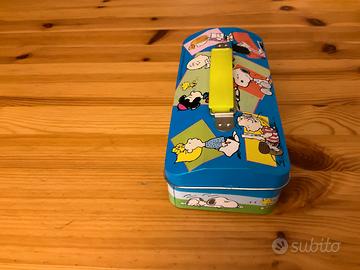 Porta merendina valigetta in latta marca Kinder con personaggi Peanuts, vuota ma in condizioni originali, nessun segno vedi foto. Vendo a 15 Euro con pagamento alla consegna di persona su Bergamo Milano Est e Sud, Pavia, Alessandria. Oppure più 7 euro per spedizione con corriere tracciato in 3 gg lavorativi con pagamento SOLO CON BONIFICO. Per altre foto o info scrivete o chiamate