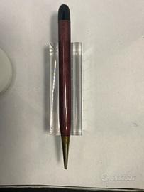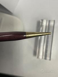 Portamina Burnham in celluloide fragola e finiture gold. Made in England anni ‘30, sistema a rotazione funzionante, Lunghezza cm. 12