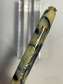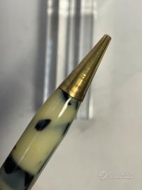 Portamina in celluloide marble giallo-blu , finiture gold. Made in England sistema a rotazione, cm 10