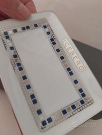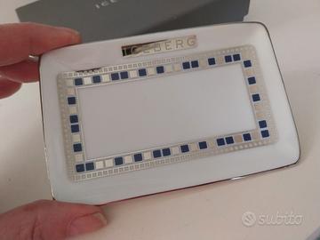 porta oggetti in porcellana francese collezione Iceberg. decorazioni in blu e argento. stato come nuovo con scatola originale ( la scatola ha una macchia bianca) le misure del oggetto sono: 12,5 × 8 cm.