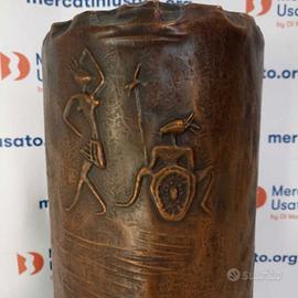 Portaombrelli Bragalini in rame sbalzato con temi tribali. Marchio della