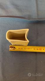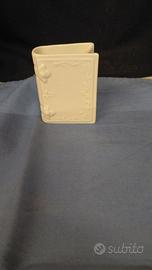 Portapenne in ceramica finemente lavorata a forma di libro.