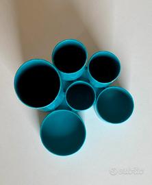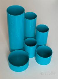 Vendo originale portapenne organizer da scrivania anni 70/80. Materiale: plastica di colore celeste. Dimensioni: cm 13,5 x 14,5 h Usato, con piccoli graffi (vedi foto). Design anni 70/80 tipo oggetti kartell artemide olivetti danese milano rexite velca ecc...