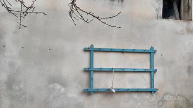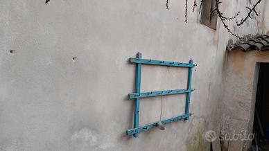 piattera ( portapentole) antichissima,turchese,legno,ha qualche puntino di tarlo.Non ha difetti. 111 cm x 71 x 2.