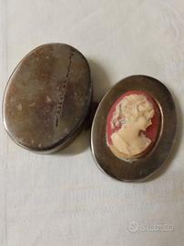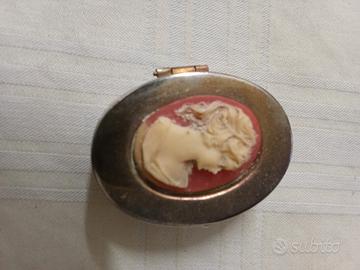 Elegante portapillole diviso in due scomparti, vintage anni 60, con Cammeo
