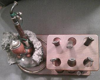 Come da foto portapipe con vaso in pietra lavica, ingombro massimo senza pipe 24x14x13cm, e ben sette modelli di pipe.