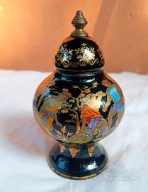 Vaso portaprofumo vintage in ceramica nera con decorazioni mitologie greche. Misura altezza cm.11 circonferenza cm.20