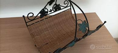 Portariviste, portagiornali, centrotavola, cesto decorativo in ferro battuto e vimini/rattan.