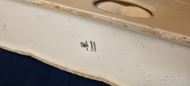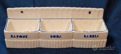 RARISSIMO porta sapone/soda/sabbia della ceramiche CORONETTI CUNARDO --che veniva usato nella cucina nella prima meta del 900 --scritte e decoro blu ---oggetto originale ---dimensioni cm.10X10X34