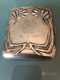 Portasigarette argento 800, liberty anno 1912. Cm. 7 x 8.
