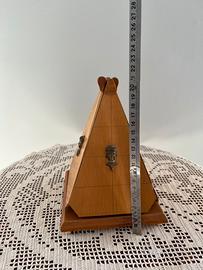 Elegante portasigarette da tavolo vintage a forma piramidale. Realizzato in legno con finiture metalliche e interni in velluto. Risalente agli anni ‘50/‘60. Piccola scalfittura nel legno come da foto