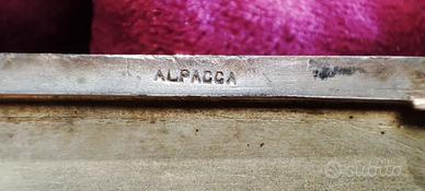 Elegante portasigarette vintage, realizzato in alpacca. Presenta un design rigato con un'area ovale liscia per un'eventuale incisione.