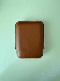 Portasigari da tasca da 3 sigari formato “Robusto“ Ring 50. Lavorazione in pelle saffiano marrone.