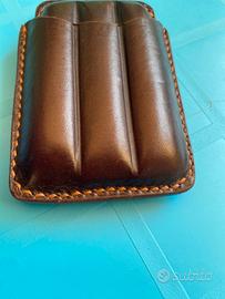Bellissima portasifari di pelle Marrone fatto a mano in Toscana. Per vero amanti di sigari. Nuovo mai utilizzato