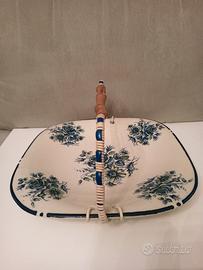 portatovaglioli in ceramica Aristide Corradini (Pi) manico in bambu' e decoro floreale anni 50