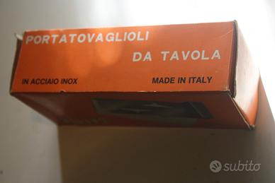 portatovaglioli da tavola in acciaio inox vintage con scatola calder italia anni 50
