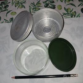 Raro portavivande tedesco marchiato Stabil D.R.P.M., in alluminio tornito, epoca anni ’40-’50.