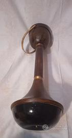 La base è stondata, in ferro di colore nero, con peso interno; la parte superiore è conica con tubolare in legno e 2 anelli in ottone