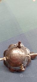 originalissimo,la base e' realizzata con un 1000 reis brasiliano del 1863 (12,75 gr.argento 925) la struttura,finemente lavorata a mano,e' di argento 833, titolo non piu' in uso,gr.17,25