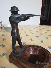 base in ottone direi altezza totale 20cm , altezza cacciatore 18 cm , ottimamemte conservato , la base presenta un colore mimetico dovuto credo ad una vernice tipo trasparente anti ossidazione , facilmente toglibile .