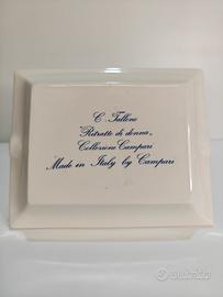 Raro posacenere Campari in ceramica bordata oro zecchino con serigrafia dell'opera d'arte dell'artista C. Tallone. La produzione risale agli anni '70 in Italia. Le condizioni sono ottime presenta solo 3 piccolissime imperfezioni sulla bordatura. Le foto sono parte integrante della descrizione. Il pacco verrà imballato con cura per evitare danni durante il trasporto. MISURE: 17X14X3 cm.