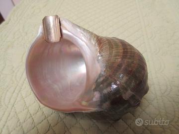 Raro ed originale posacenere . Conchiglia naturale con appoggia sigaretta in argento 800.