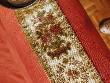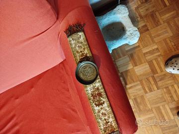 posacenere da divano con riproduzione moneta antica portoghese e fascia in tessuto damascato con frange
