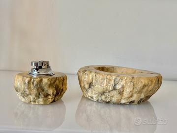 Set da fumo anni ‘60/‘70 composto da un posacenere e un accendino da tavolo, realizzati in alabastro, mai utilizzati, sempre appartenuti alla nostra famiglia. Condizioni perfette per l’età.